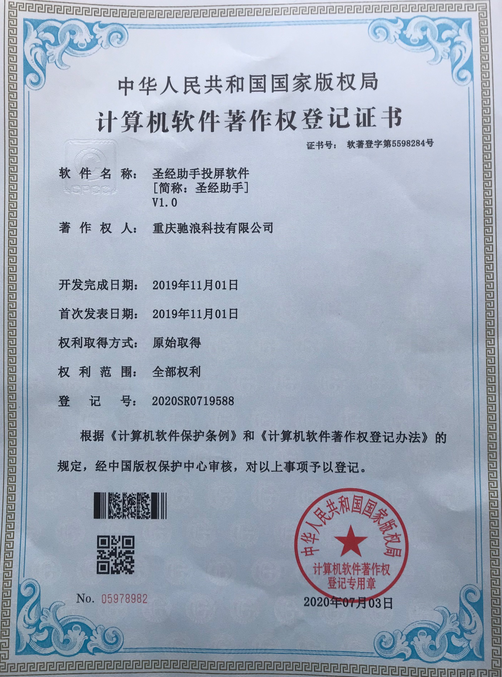 圣经助手软件著作权